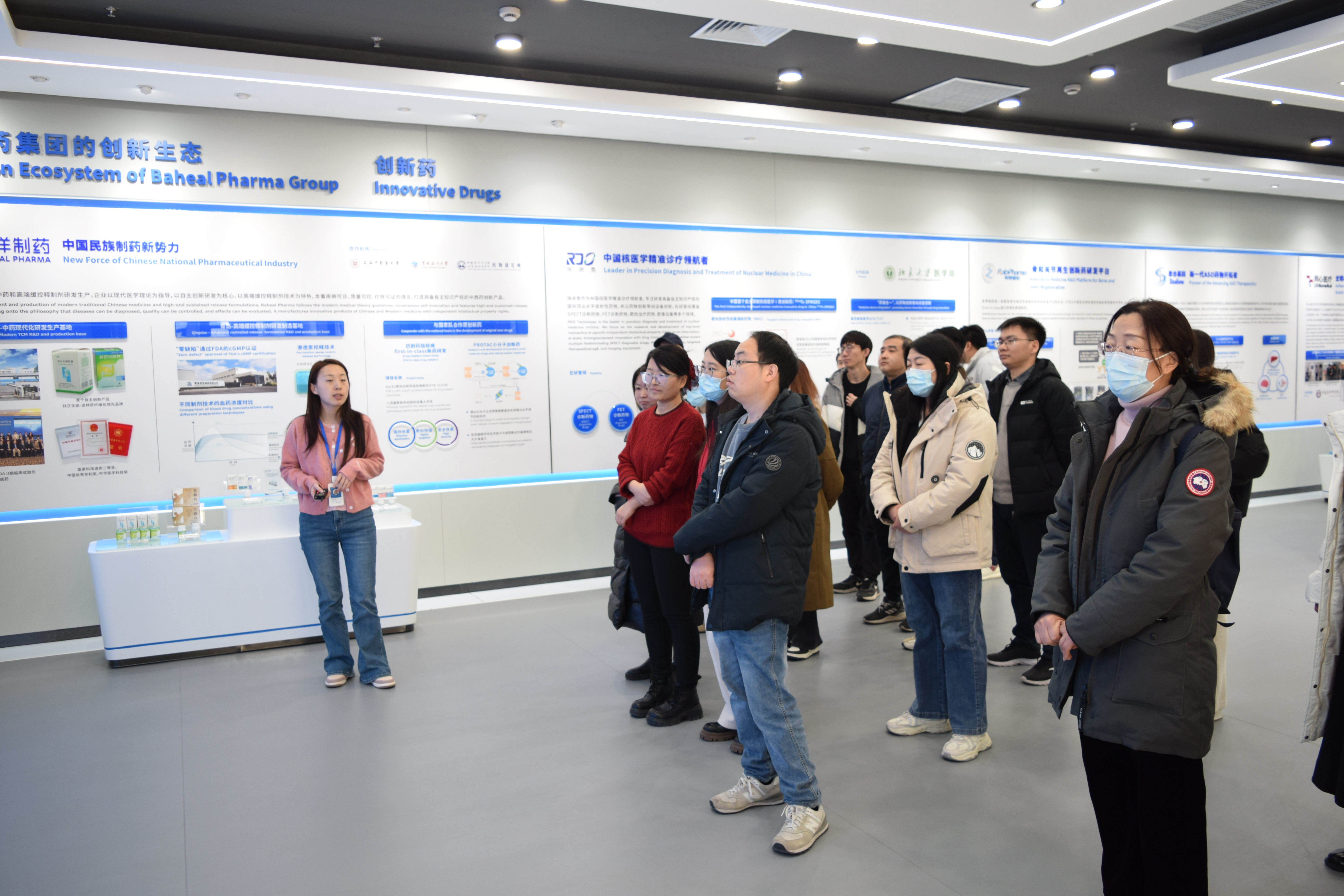 中午时分,全体员工齐聚二层第一多功能厅,随后一同前往一层参观北京百洋医药科研成果展示中心。展厅内,大家驻足观看,深入了解公司近年来的科研创新成果,感受集团在医药领域的深厚积淀与未来潜力。
