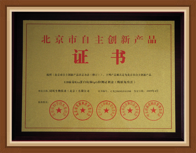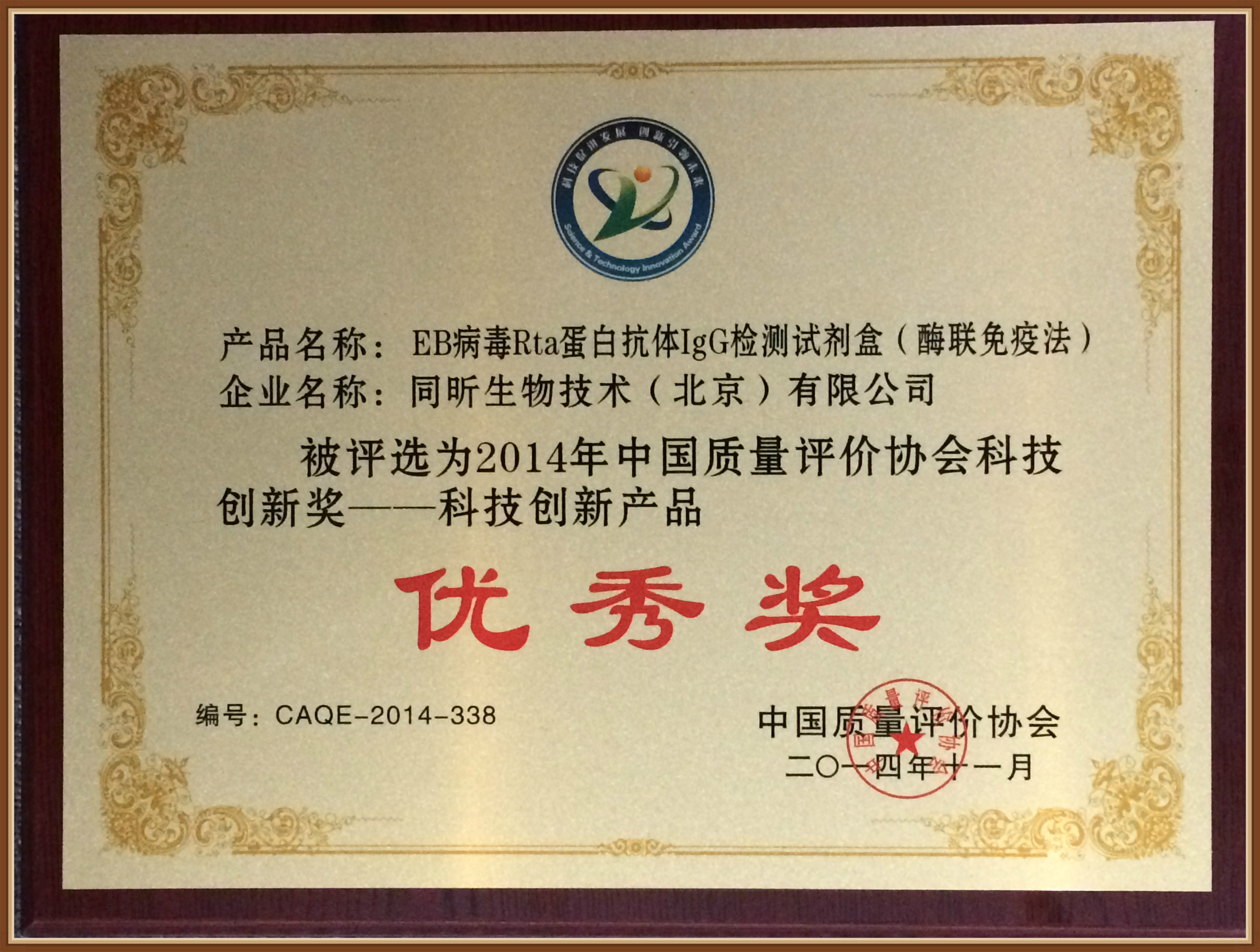 全国质量信得过单位 北京市自主创新产品 Rta蛋白抗体IgG试剂盒科技创新产品奖